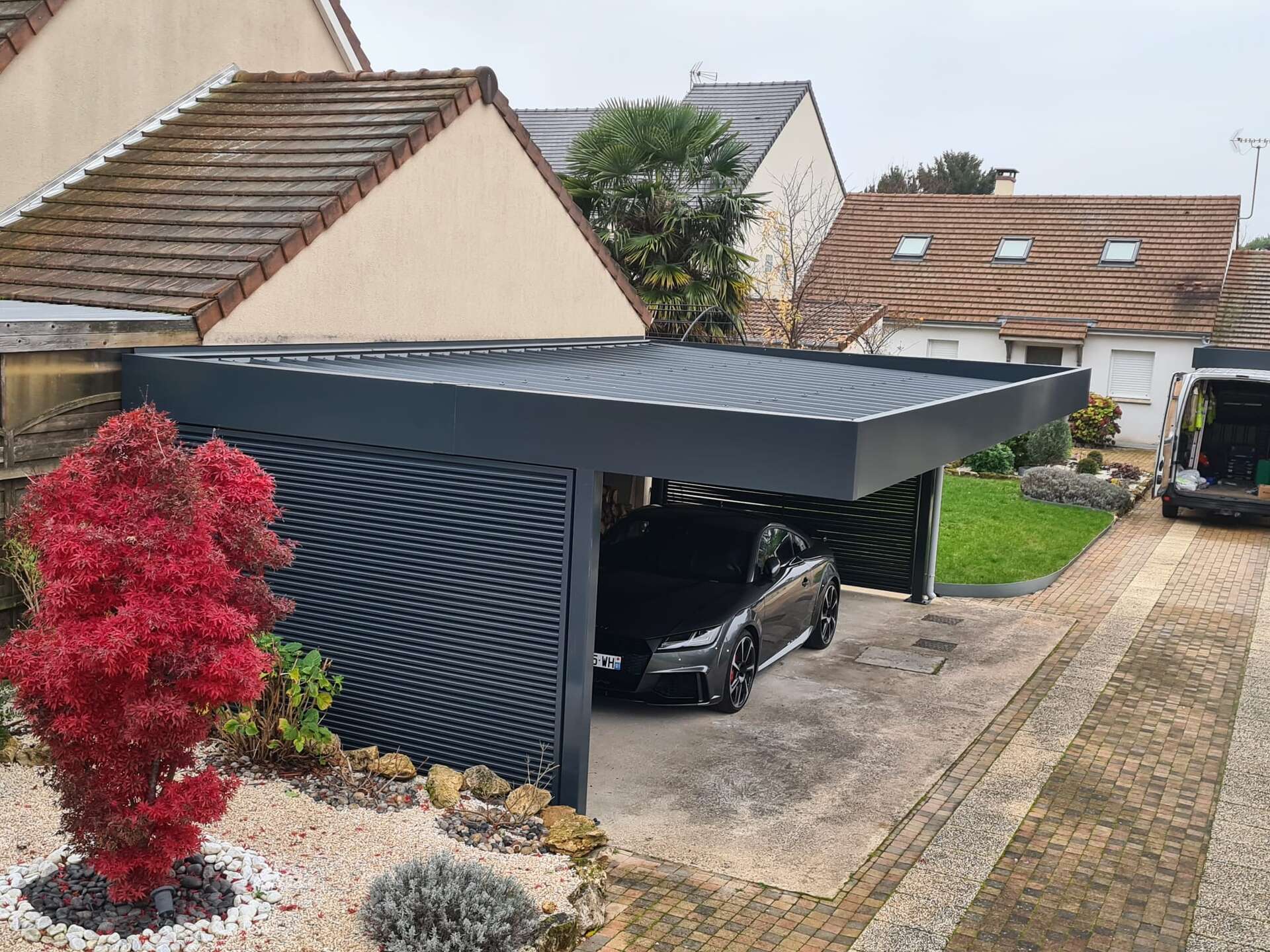 Du local à vélos au garage complet, nos abris sont conçus pour durer. Entièrement sur mesure, ils s'adaptent à la configuration de votre terrain et offrent un espace de stockage sécurisé et esthétique.Carport métallique sur mesure en Essonne